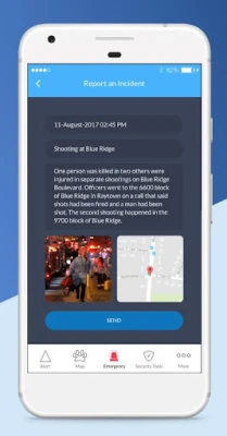 Shepherd Shield users have a customized choice of categories, including high crime areas, active shooter alerts, terrorist threats, weather emergencies, and the addresses of registered sex offenders. Data can be viewed individually, as lists, and by using a map feature. Enable/disable the functions as you choose. There is also a “report” function so a subscriber may contribute information.